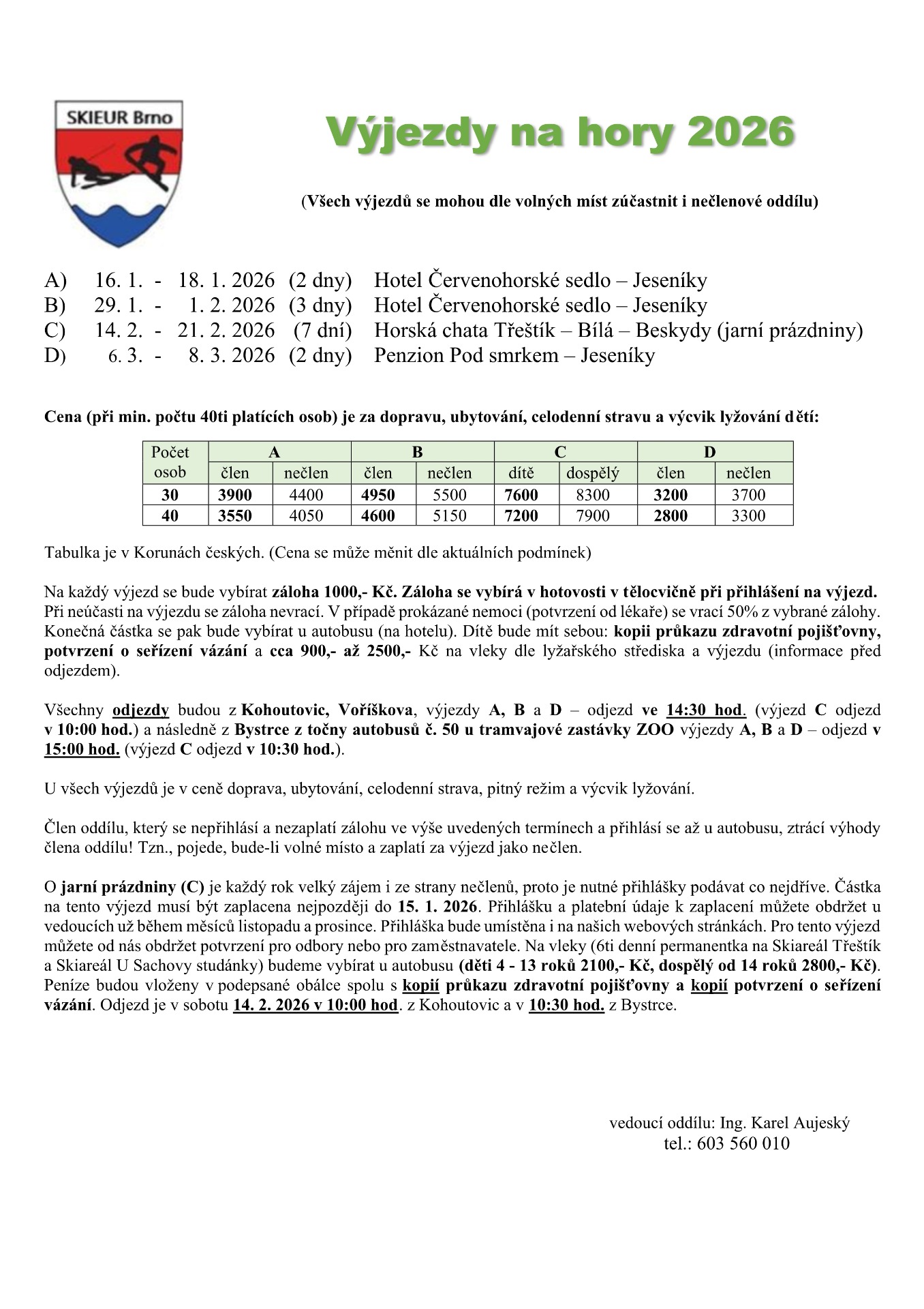 Seznam výjezdů si samozřejmě můžete také stáhnout tady. A na stejném místě také najdete přihlášku na jarní prázdniny.